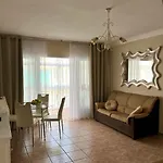Modern comforts include an iron with ironing board and an air conditioner, enhanced by a flat-screen TV with satellite channels. The apartment is also furnished with a sofa set and a writing table. A bathroom includes a walk-in shower, a separate toilet, and a bath, as well as hair dryers and towels.